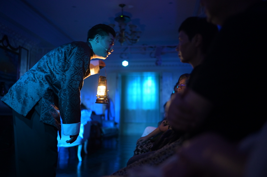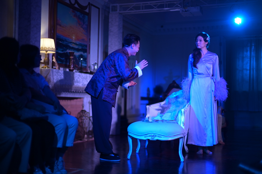 老洋房一楼的沪剧艺术传习所设有约30分钟的沪剧文化入门级体验活动。演出前,在剧中不同演员的带领下,观众们一同游览百年洋房,通过经典沪剧专属唱段表演以及经典戏曲身段互动教学,深度感受海派文化的艺术氛围。